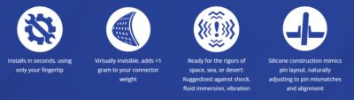 The silicone elastomer body of EESeal® slides over a connector’s existing pin layout like a glove.